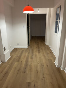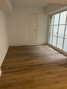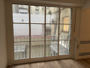 Hacia la izquierda el resto del ambiente con placard y ventanal grande que mira al balcon.