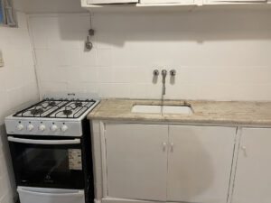 Se ingresa y hacia la derecha se encuentra la cocina integrada con el ambiente con mueble sobre mesada y alacena, cocina de 4 hornallas y horno a gas, calefon con salida al exterior. Desde la cocina se sale a muy lindo balcon lleno de luz con pileta de lavar.