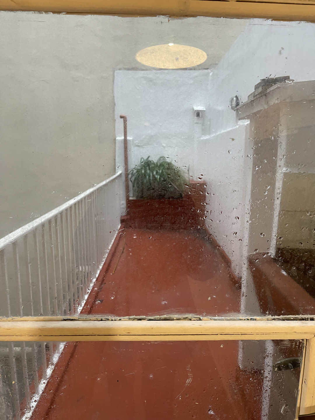 Hacia la izquierda el resto del ambiente con placard y ventanal grande que mira al balcon.