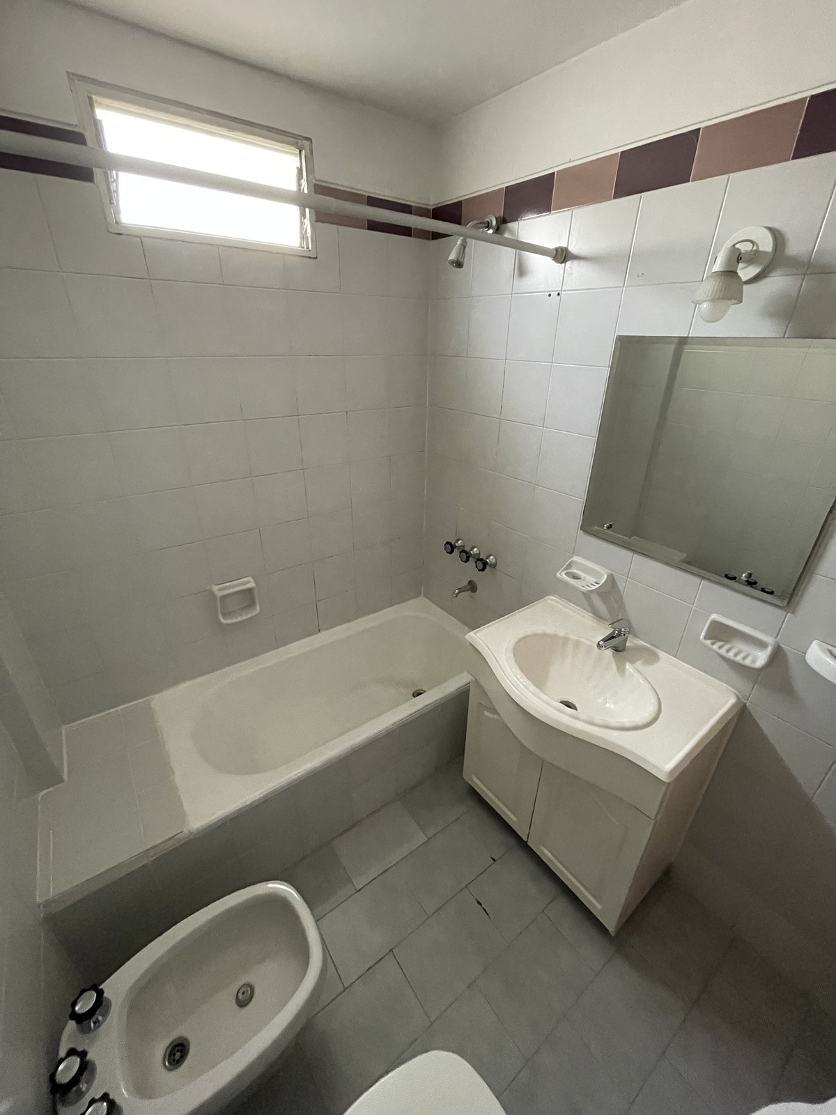 Baño completo con bañera, vanitory y ventana al exterior.El departamento se encuentra en excelentes condiciones, con pisos de parquet y persianas en ambos ambientes.